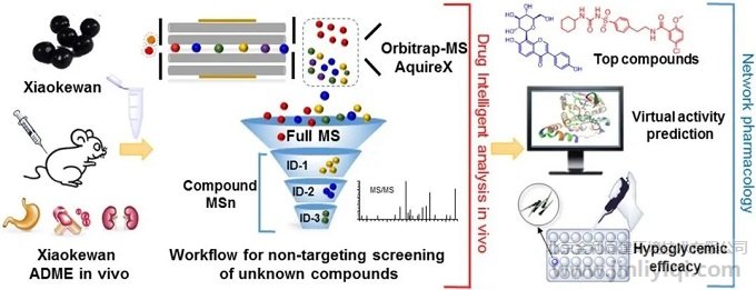近期,赛默飞色谱质谱小分子质谱应用团队与厦门大学吴彩胜教授团队、及南京药明康德和MassDefect Technologies公司朱明社博士团队首次利用了AcquireX 智能化数据采集模式研究了消渴丸治疗糖尿病的药理机制和物质基础,成果发表在“Pharmacological Research, IF=5.89”,题为“Artificial intelligence and network pharmacology based investigation of pharmacological mechanism and substance basis of Xiaokewan in treating diabetes”。
